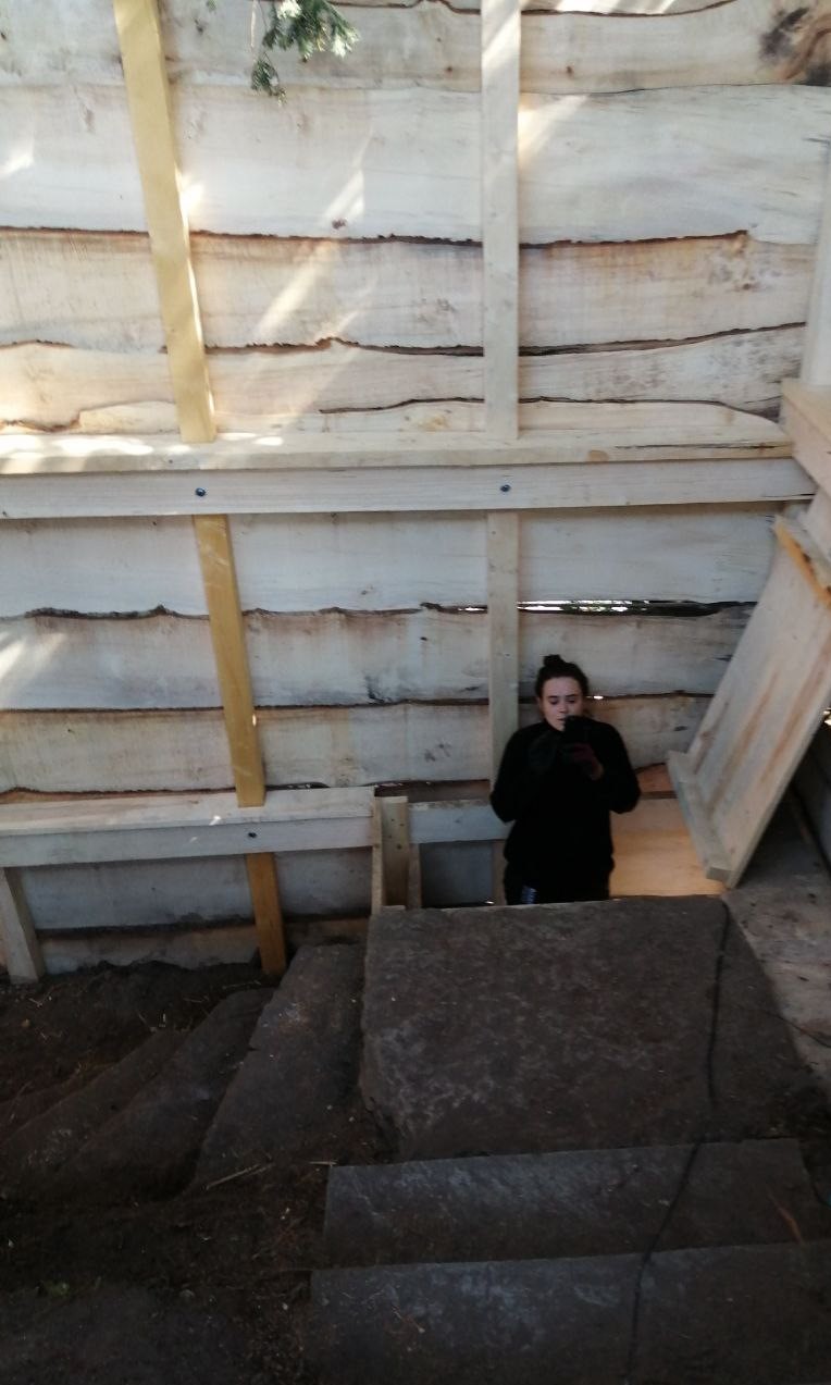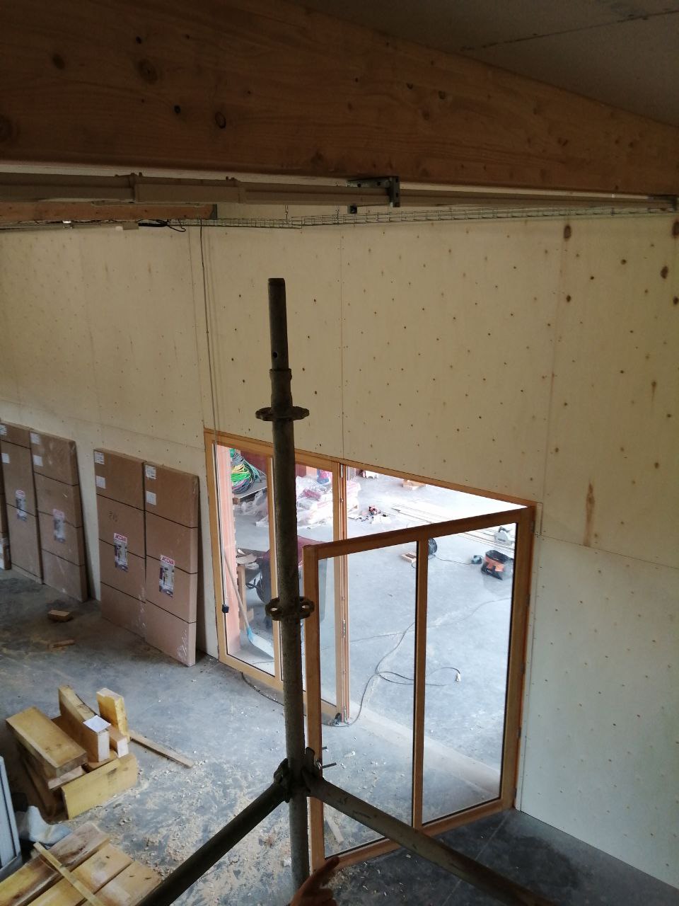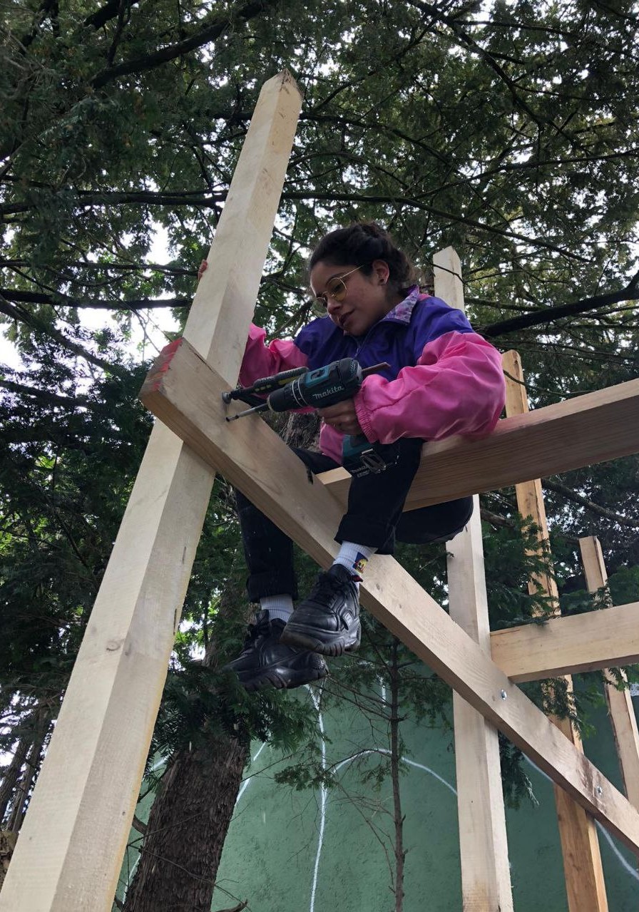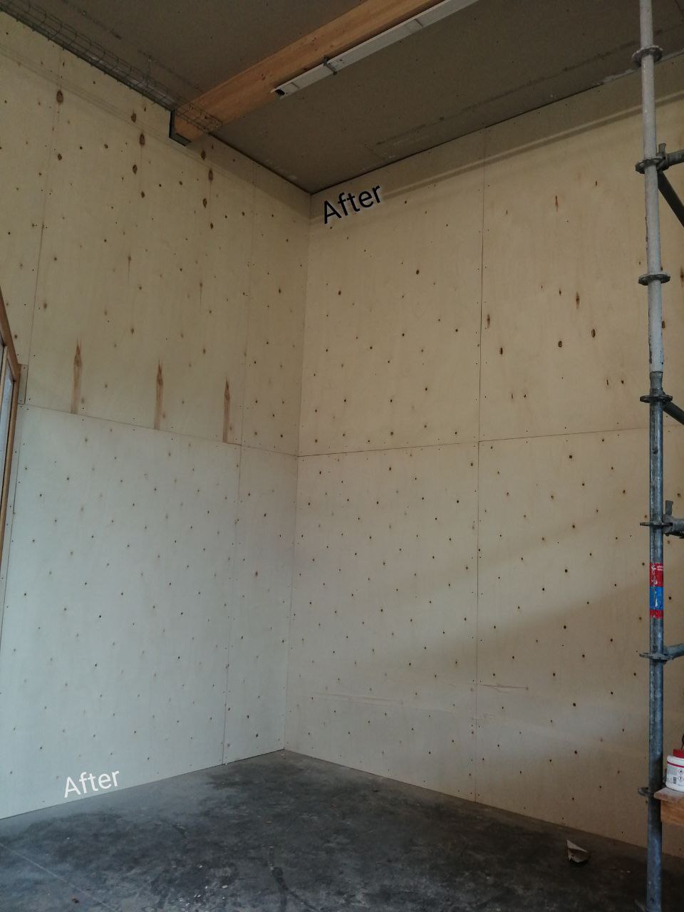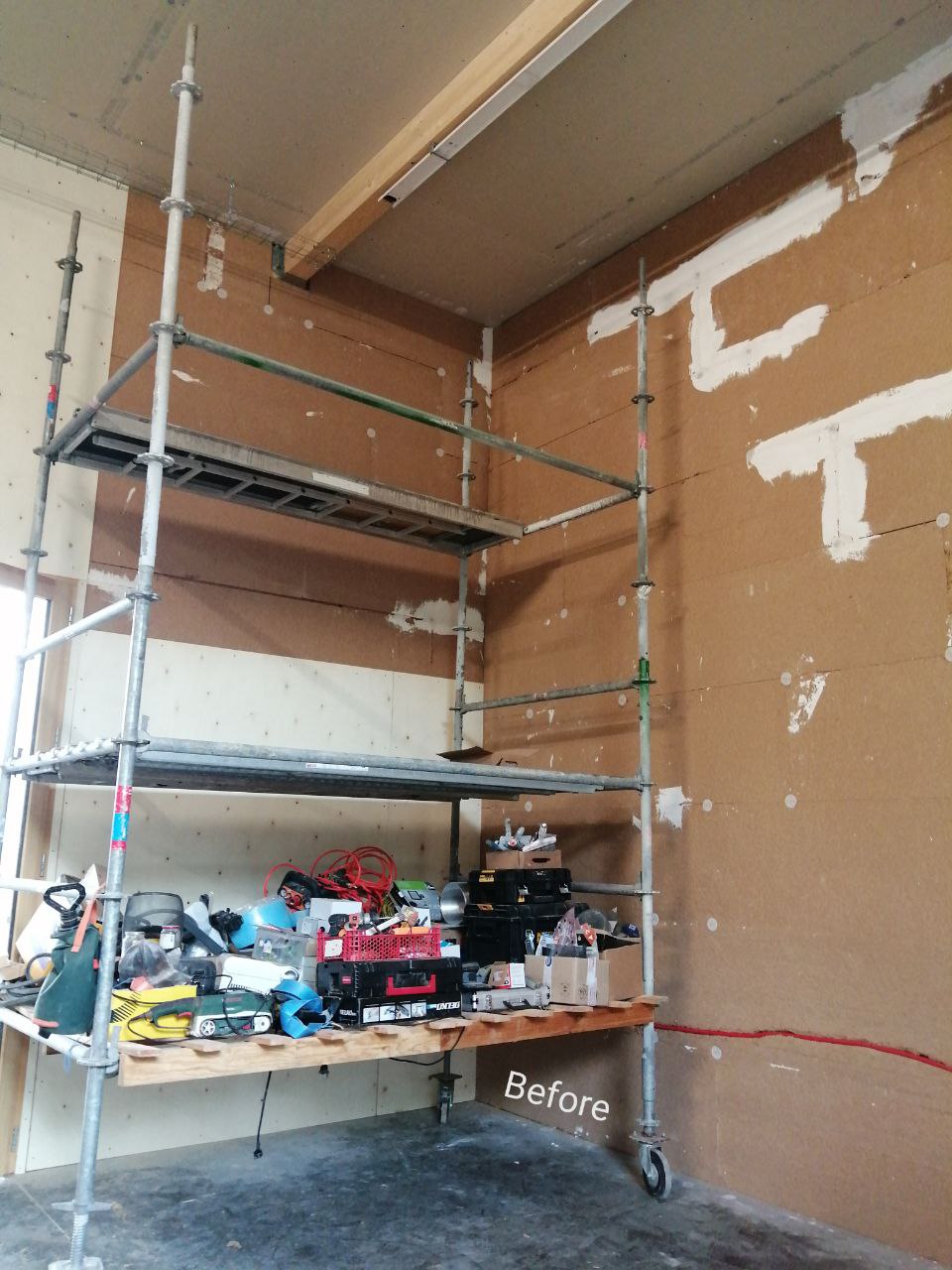 Clouer des revetement muraux en sapin dans l'atelier machine de bermuda avec Maude :)