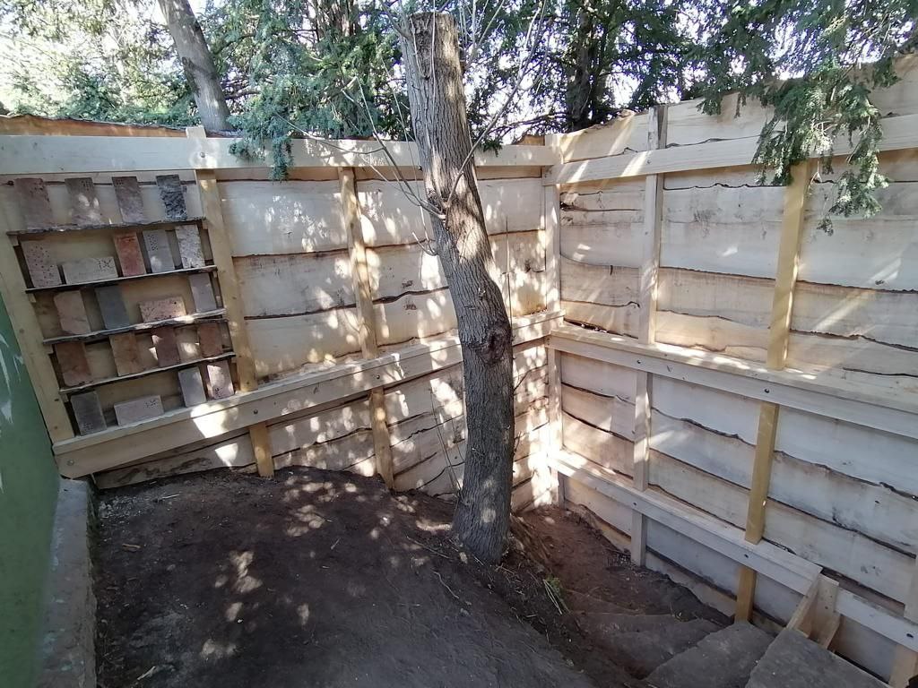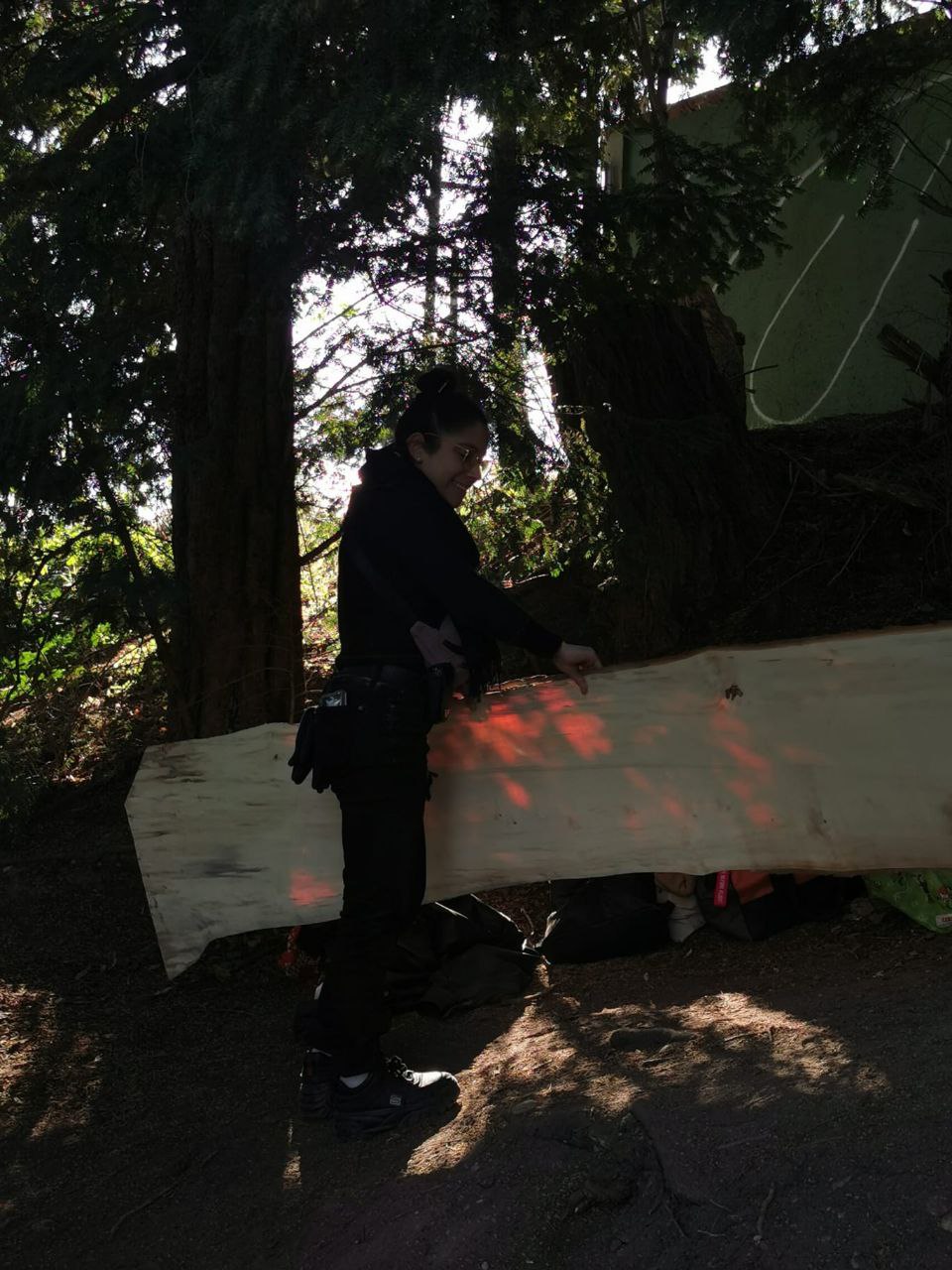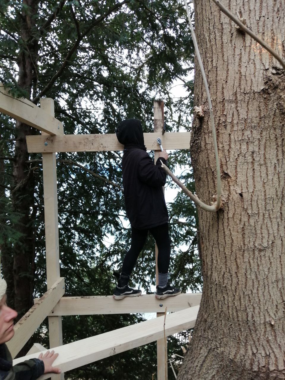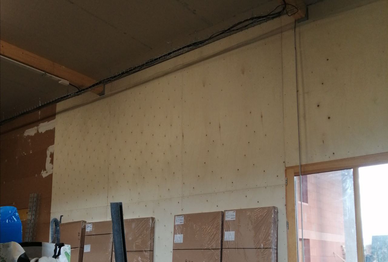 Clouer des revetement muraux en sapin dans l'atelier machine de bermuda avec Maude :)